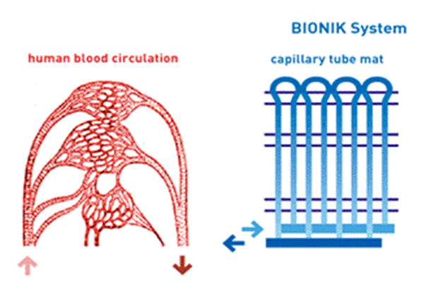 随着现代建筑对室内气候控制的要求越来越高,人们对舒适度、空间利用率及能源消耗要求的不断提高,近年来毛细管网技术在采暖行业受到众多客户的追求,该技术定位为环保型产品,毛细管网一般以水为介质输送能量,具有高效节能和高舒适度的特点,可以与装饰层结合安装在顶棚、地面或墙面,均匀散布能量,一旦形成辐射面后可与其他非采暖表面发生热量的辐射换热,辐射过程的持续发生,能不断调节人体与室内家具其他物品表面温度,就像皮肤中的毛细血管一样柔和的调节室内温度,从而满足人体高舒适度要求。该项技术广泛应用于高档别墅、公寓、酒店、民宿、母婴中心、办公大楼等人居建筑与公共建筑。